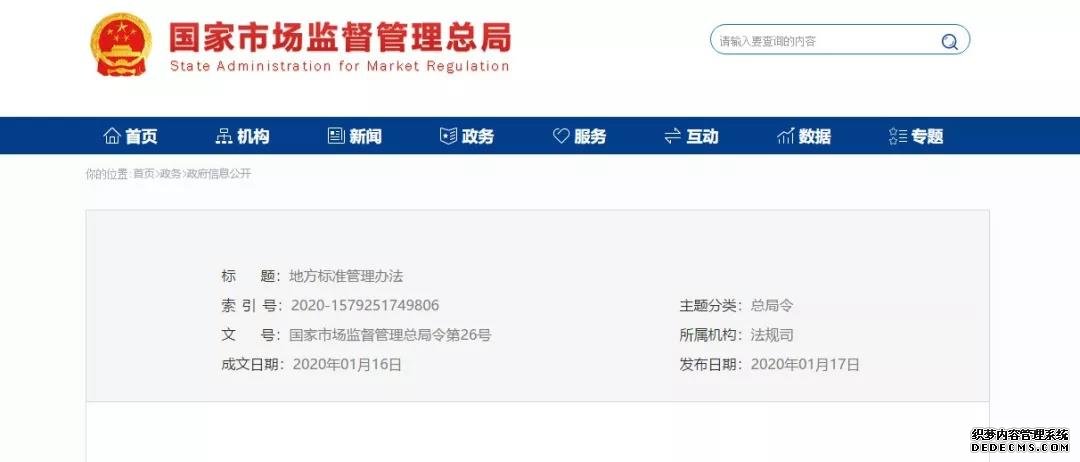 重磅!國家市場監督管理總局令第26號《地方標準