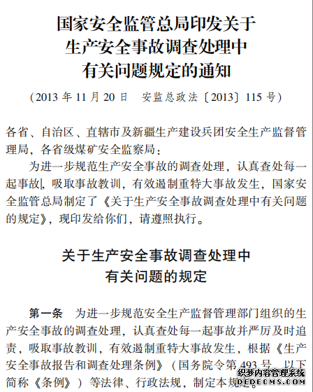 國家安全監管總局印發關于 生產安全事故調查處
