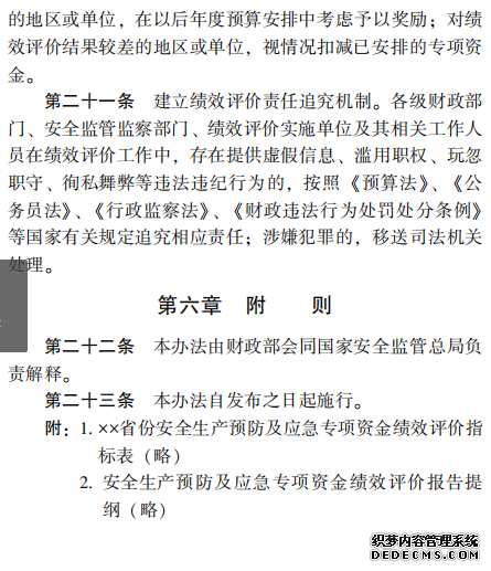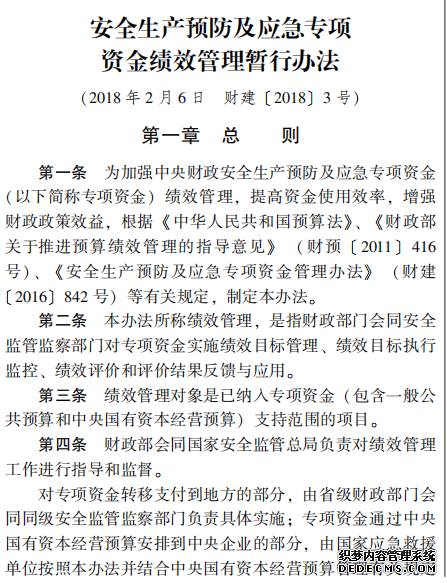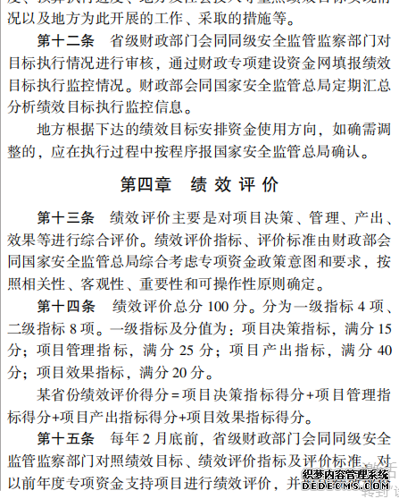 安全生產預防及應急專項 資金績效管理暫行辦法