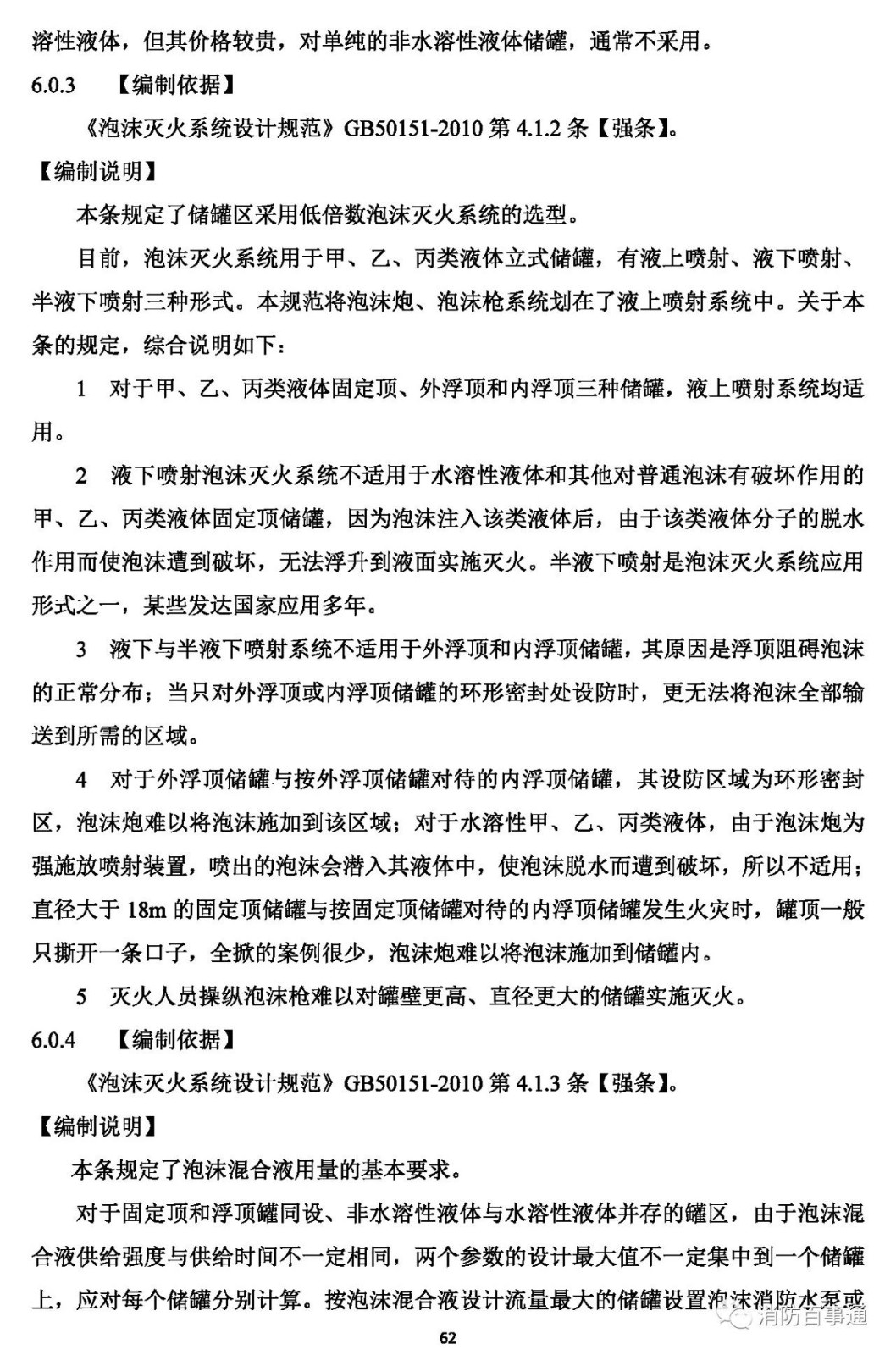 6.0.3 儲罐區的低倍數泡沫滅火系統應符合下列規定: