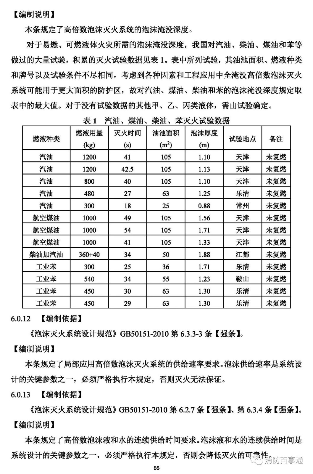 6.0.13 泡沫的噴放時間和淹沒時間應與保護對象的火災蔓延特性相適應,并應能有效控制和撲滅火災。高倍數泡沫液和水的連續供給時間應符合下列規定: