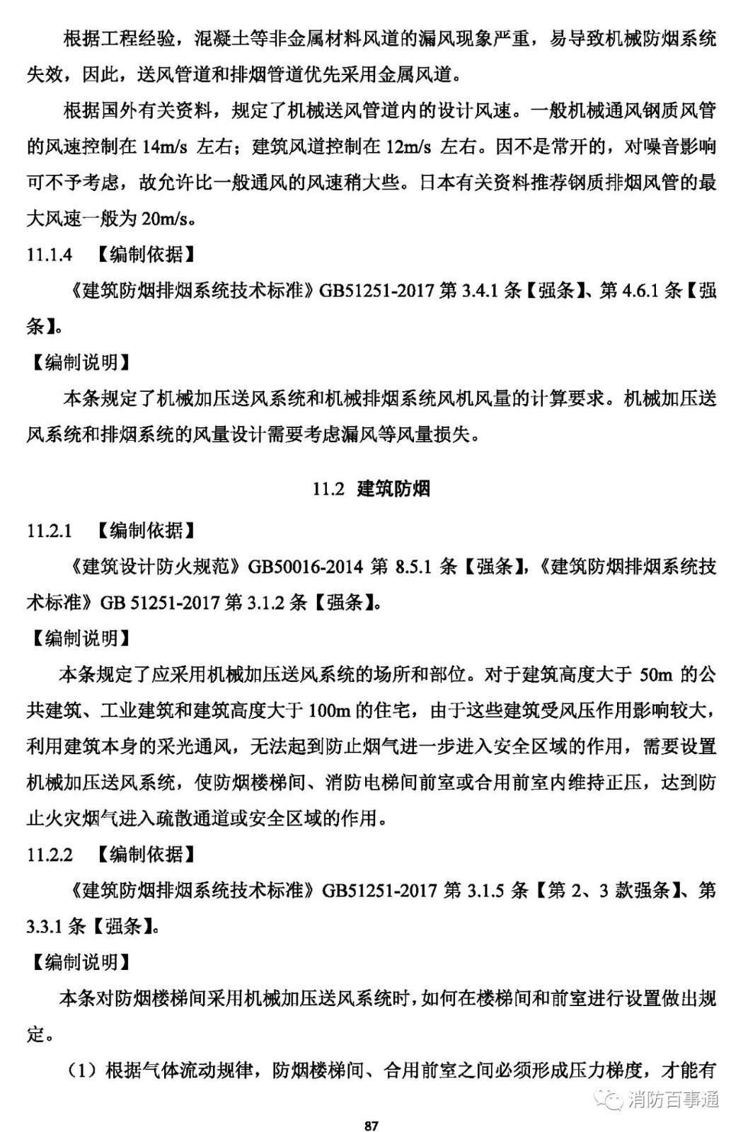 11.1.2 建筑內的防煙、排煙系統應具有保證系統正常工作的技術措施。
