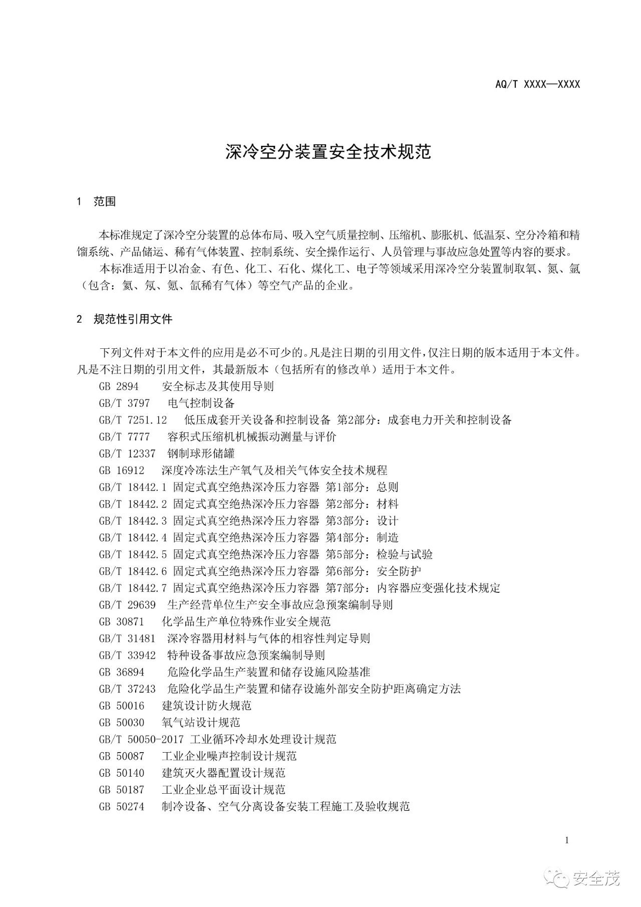 附件:1.深冷空分裝置安全技術規范(征求意見稿)