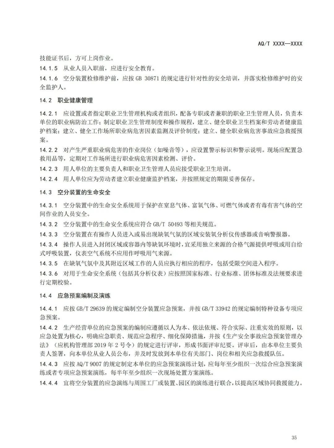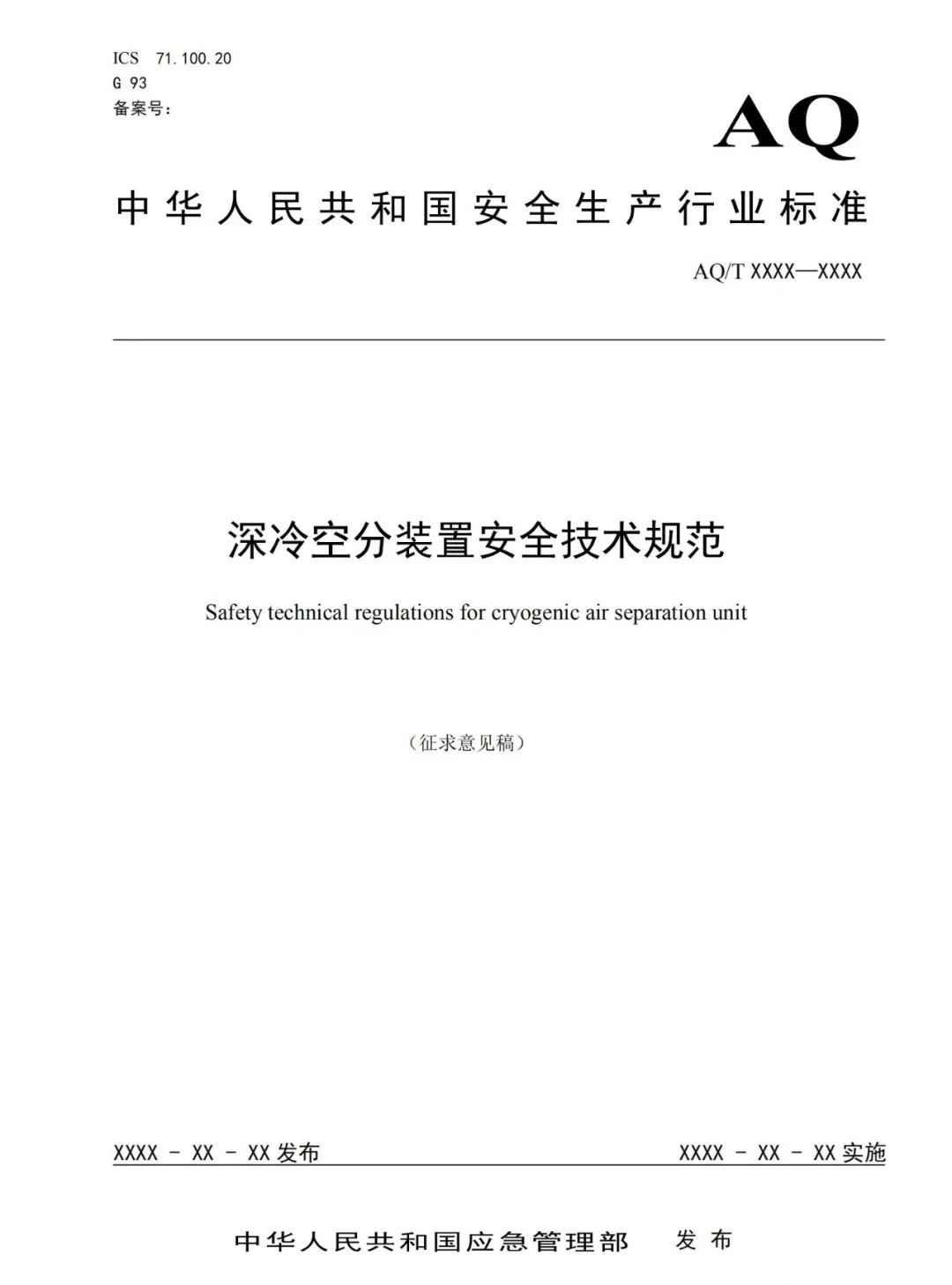 應(yīng)急管理部對(duì)《深冷空分裝置安全技術(shù)規(guī)范》等兩項(xiàng)標(biāo)準(zhǔn)征求意見