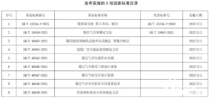 9項煤炭領域國家標準正式發布