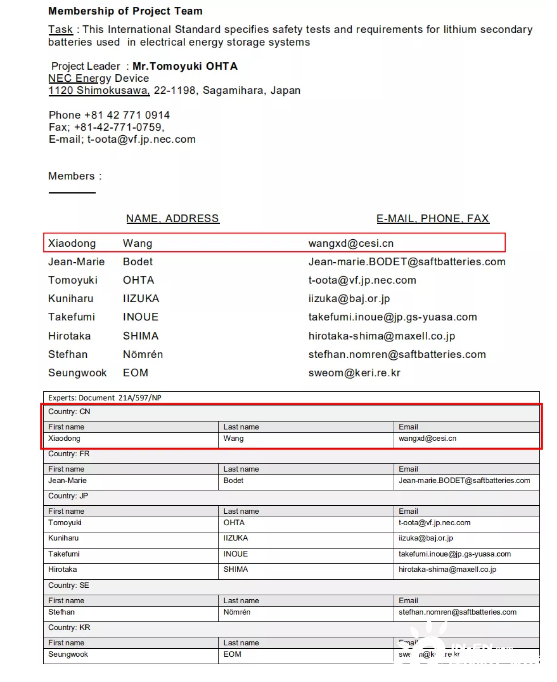 中國電子技術(shù)標準化研究院(賽西,CESI)作為IEC/SC21A國內(nèi)總歸口單位,多年來一直積極參與電池領(lǐng)域相關(guān)的國際標準化活動,負責向IEC推薦行業(yè)專家、組織電池行業(yè)相關(guān)單位成員參加IEC/SC21A國際會議、答復IEC文件和投票工作。賽西專家作為IEC 63056:2020的項目組成員和起草人直接參與了該標準的起草工作。