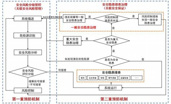 如發現重大安全隱患,應按照8.3的要求進行治理;如發現一般安全隱患,應當按照8.4的要求進行治理;排查中如發現潛在的危險源,應回溯到“7.2系統描述”進行定位和梳理,適時啟動安全風險分級管控流程識別危險源并管控相關風險;如評估發現的問題不屬于上述任何一類,可選擇是否改進后,回到系統運行環節。