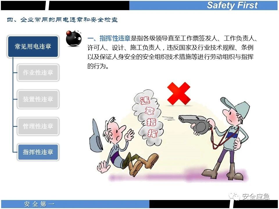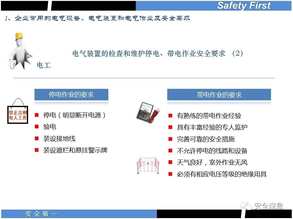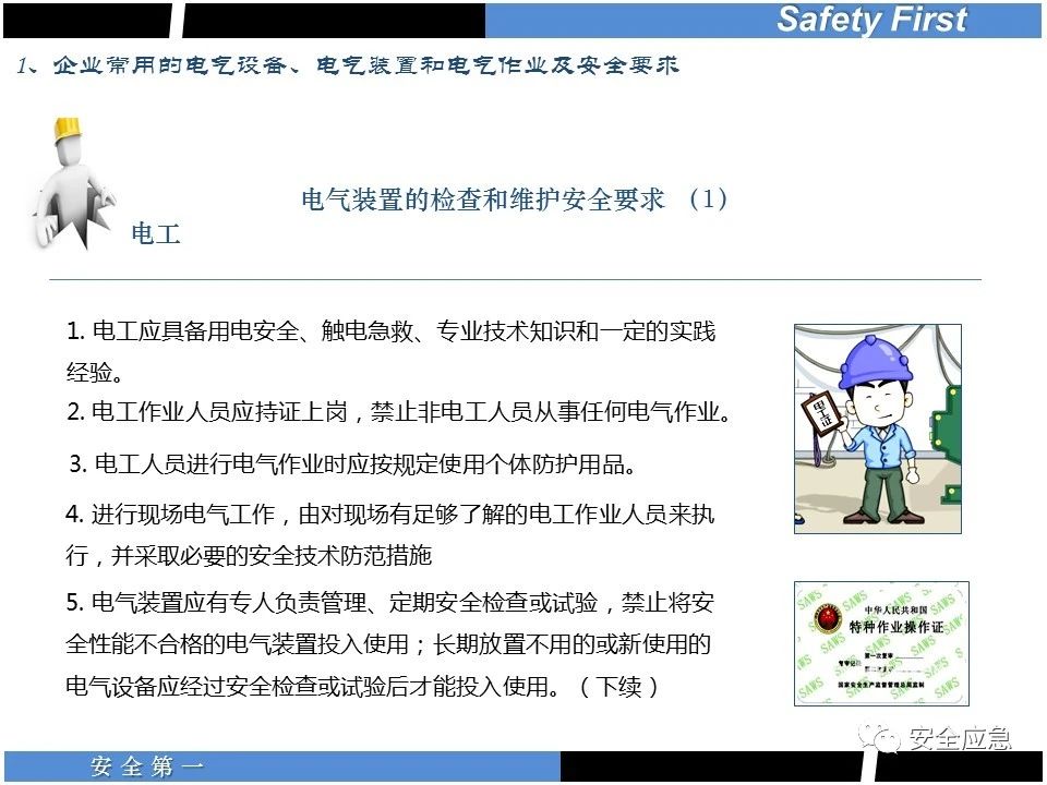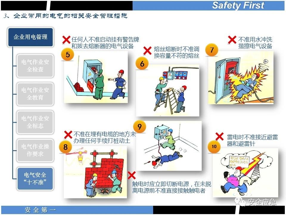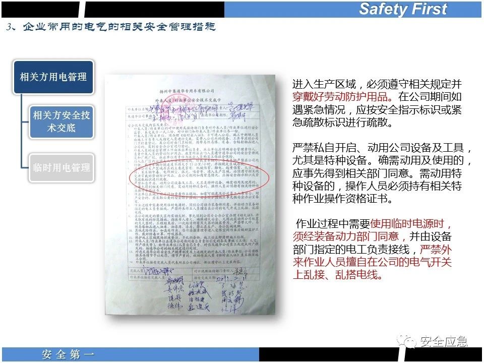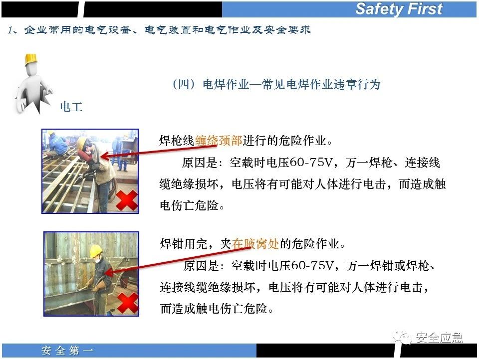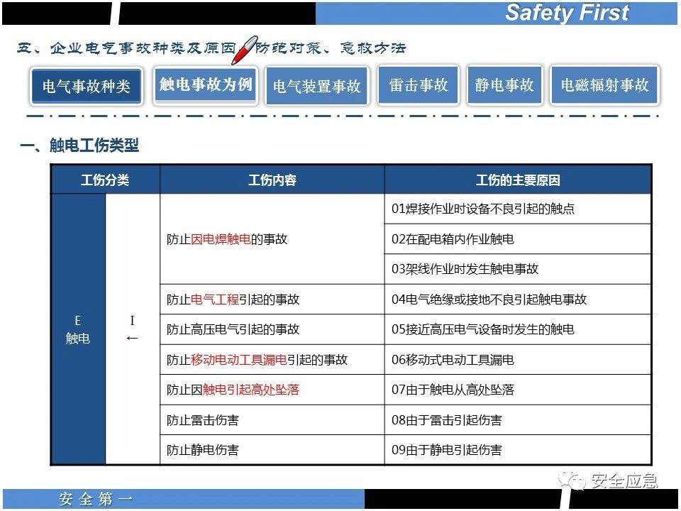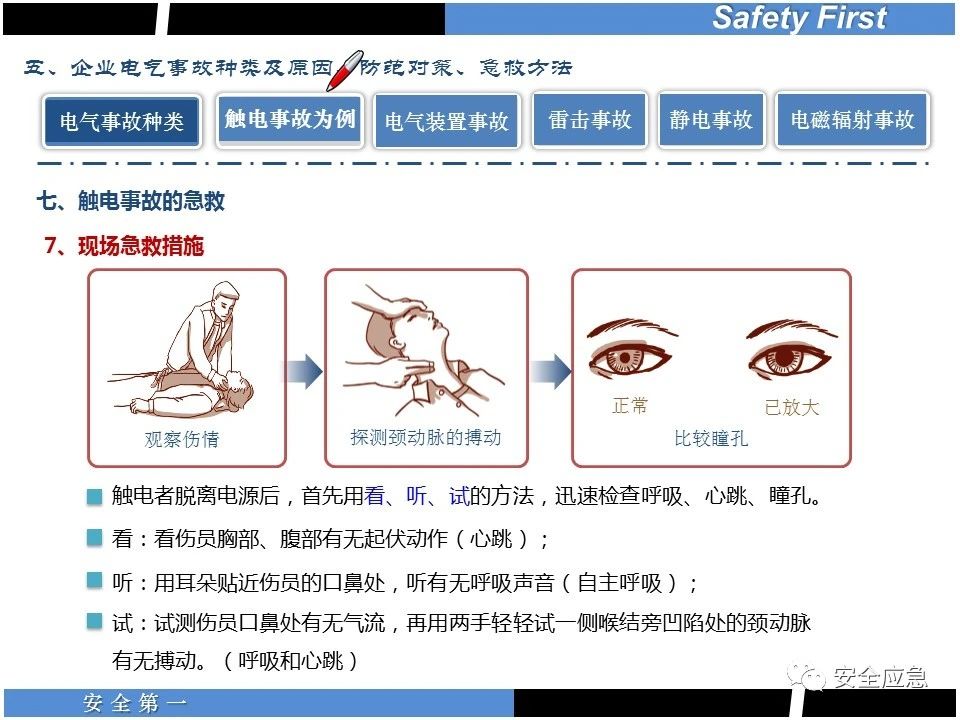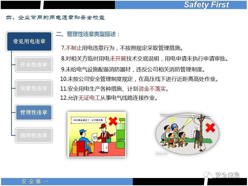 案例73 事故案例73:某35變電站準(zhǔn)備10kV避雷器試驗(yàn)。作業(yè)人員會(huì)同運(yùn)行人員準(zhǔn)備查看設(shè)備實(shí)際情況,拆卸10kV開(kāi)關(guān)柜背板螺栓,打開(kāi)了柜門上的電磁鎖,并打開(kāi)了后柜門后,作業(yè)人員探頭進(jìn)入開(kāi)關(guān)柜內(nèi)時(shí),對(duì)開(kāi)關(guān)柜放電。 其它案例見(jiàn)17、18、19、20、21、22、23、50、52。 (27)多組人員組織混亂 案例74 事故案例74:某單位開(kāi)展500kV線路停電檢修和地線融冰試驗(yàn)。1名工作人員不聽(tīng)他人勸阻,登塔拆除引流線。隨后開(kāi)展地線融冰試驗(yàn),該工作人員觸電死亡。 其它案例見(jiàn)45、46、47、48。 (28)交底不認(rèn)真 案例75 事故案例75:某工作負(fù)責(zé)人帶領(lǐng)兩名工作人員準(zhǔn)備在10kV線路裝設(shè)接地線。工作前,工作負(fù)責(zé)人沒(méi)有進(jìn)行班前(后)會(huì),沒(méi)有分配工作任務(wù),也沒(méi)有交代安全注意事項(xiàng),另外兩人也沒(méi)有主動(dòng)詢問(wèn),相互提醒,導(dǎo)致工作負(fù)責(zé)人無(wú)監(jiān)護(hù)誤登運(yùn)行線路,造成觸電。 其它案例見(jiàn)32。 (29)監(jiān)護(hù)不到位 l 單人工作無(wú)監(jiān)護(hù) 事故案例:36。 l 監(jiān)護(hù)人參與工作 事故案例:11。 l 監(jiān)護(hù)不認(rèn)真,或默許違章行為 事故案例:67。 (30)人員、工作安排不恰當(dāng) 案例76 事故案例76:某供電所安排不具備單獨(dú)工作資格和能力的新入廠員工上桿進(jìn)行配變?cè)O(shè)備搶修工作,由于安全距離不夠,員工經(jīng)驗(yàn)不足,監(jiān)護(hù)不到位,導(dǎo)致觸電。 案例77 事故案例77:某高壓試驗(yàn)班開(kāi)展定檢預(yù)試作業(yè)。工作負(fù)責(zé)人與工作人員在抄錄放電計(jì)數(shù)器銘牌,另一名剛參加工作不久的工作人員拿著自制試驗(yàn)線插入移動(dòng)電源盤插座內(nèi),然后,用左、右手分別拿住兩個(gè)鱷魚夾準(zhǔn)備對(duì)放電器搭接做試驗(yàn),左、右手習(xí)慣性的分別握住了兩個(gè)鱷魚夾的導(dǎo)體部分,此時(shí)電流通過(guò)人體,漏電保護(hù)器沒(méi)有動(dòng)作,觸電死亡。 (31)單人作業(yè) l 野外單人巡線、勘察 案例78 事故案例78:某單位開(kāi)展線路巡視時(shí),單人作業(yè),在被告知“巡視完N58塔后切勿過(guò)江,要沿原路返回”的情況下,仍然獨(dú)自一人違規(guī)游泳過(guò)江,溺水身亡。 案例79 事故案例79:某單位野外勘察時(shí),某工作人員在未告知工作負(fù)責(zé)人的情況下,獨(dú)自一人返回車輛所在地,途中墜落懸崖暈倒,受輕傷并失蹤12小時(shí)。 附件:最全面的電氣安全培訓(xùn),實(shí)用!