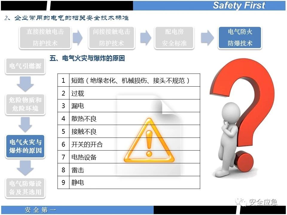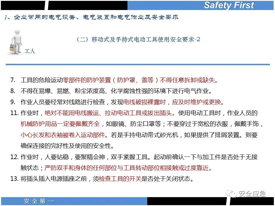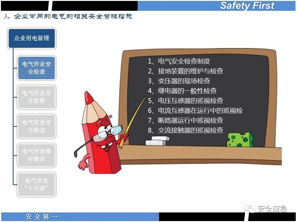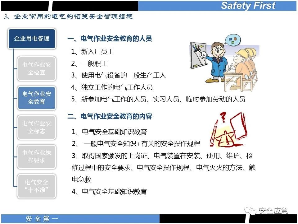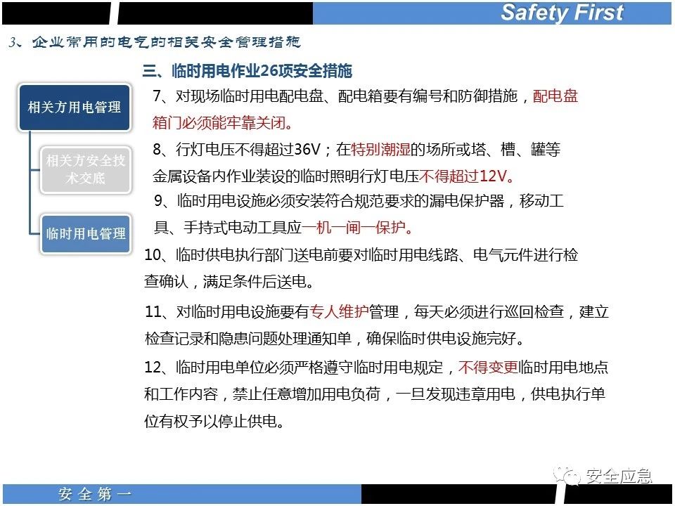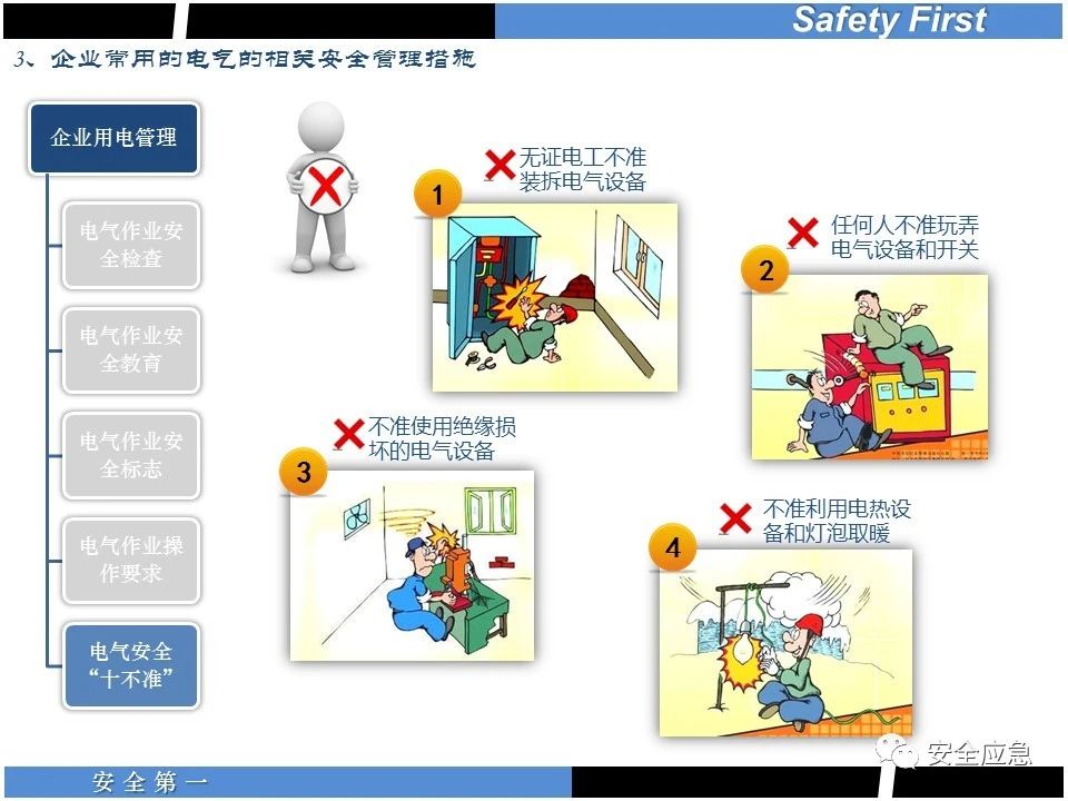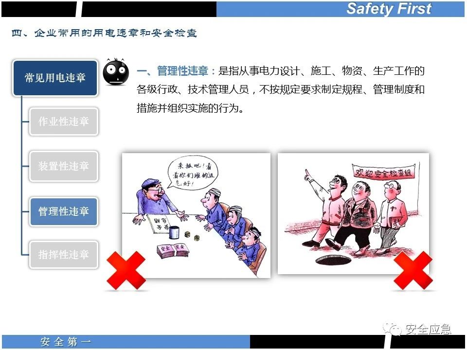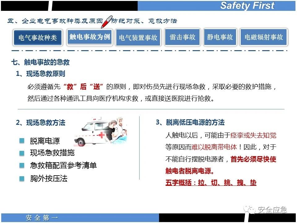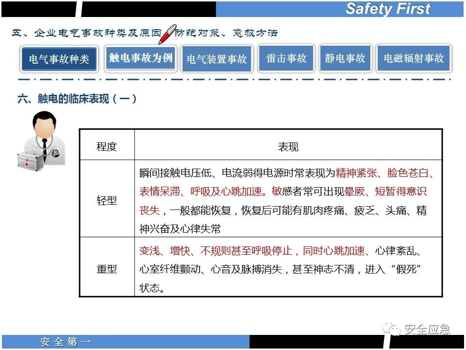 案例73 事故案例73:某35變電站準(zhǔn)備10kV避雷器試驗(yàn)。作業(yè)人員會(huì)同運(yùn)行人員準(zhǔn)備查看設(shè)備實(shí)際情況,拆卸10kV開(kāi)關(guān)柜背板螺栓,打開(kāi)了柜門上的電磁鎖,并打開(kāi)了后柜門后,作業(yè)人員探頭進(jìn)入開(kāi)關(guān)柜內(nèi)時(shí),對(duì)開(kāi)關(guān)柜放電。 其它案例見(jiàn)17、18、19、20、21、22、23、50、52。 (27)多組人員組織混亂 案例74 事故案例74:某單位開(kāi)展500kV線路停電檢修和地線融冰試驗(yàn)。1名工作人員不聽(tīng)他人勸阻,登塔拆除引流線。隨后開(kāi)展地線融冰試驗(yàn),該工作人員觸電死亡。 其它案例見(jiàn)45、46、47、48。 (28)交底不認(rèn)真 案例75 事故案例75:某工作負(fù)責(zé)人帶領(lǐng)兩名工作人員準(zhǔn)備在10kV線路裝設(shè)接地線。工作前,工作負(fù)責(zé)人沒(méi)有進(jìn)行班前(后)會(huì),沒(méi)有分配工作任務(wù),也沒(méi)有交代安全注意事項(xiàng),另外兩人也沒(méi)有主動(dòng)詢問(wèn),相互提醒,導(dǎo)致工作負(fù)責(zé)人無(wú)監(jiān)護(hù)誤登運(yùn)行線路,造成觸電。 其它案例見(jiàn)32。 (29)監(jiān)護(hù)不到位 l 單人工作無(wú)監(jiān)護(hù) 事故案例:36。 l 監(jiān)護(hù)人參與工作 事故案例:11。 l 監(jiān)護(hù)不認(rèn)真,或默許違章行為 事故案例:67。 (30)人員、工作安排不恰當(dāng) 案例76 事故案例76:某供電所安排不具備單獨(dú)工作資格和能力的新入廠員工上桿進(jìn)行配變?cè)O(shè)備搶修工作,由于安全距離不夠,員工經(jīng)驗(yàn)不足,監(jiān)護(hù)不到位,導(dǎo)致觸電。 案例77 事故案例77:某高壓試驗(yàn)班開(kāi)展定檢預(yù)試作業(yè)。工作負(fù)責(zé)人與工作人員在抄錄放電計(jì)數(shù)器銘牌,另一名剛參加工作不久的工作人員拿著自制試驗(yàn)線插入移動(dòng)電源盤插座內(nèi),然后,用左、右手分別拿住兩個(gè)鱷魚夾準(zhǔn)備對(duì)放電器搭接做試驗(yàn),左、右手習(xí)慣性的分別握住了兩個(gè)鱷魚夾的導(dǎo)體部分,此時(shí)電流通過(guò)人體,漏電保護(hù)器沒(méi)有動(dòng)作,觸電死亡。 (31)單人作業(yè) l 野外單人巡線、勘察 案例78 事故案例78:某單位開(kāi)展線路巡視時(shí),單人作業(yè),在被告知“巡視完N58塔后切勿過(guò)江,要沿原路返回”的情況下,仍然獨(dú)自一人違規(guī)游泳過(guò)江,溺水身亡。 案例79 事故案例79:某單位野外勘察時(shí),某工作人員在未告知工作負(fù)責(zé)人的情況下,獨(dú)自一人返回車輛所在地,途中墜落懸崖暈倒,受輕傷并失蹤12小時(shí)。 附件:最全面的電氣安全培訓(xùn),實(shí)用!