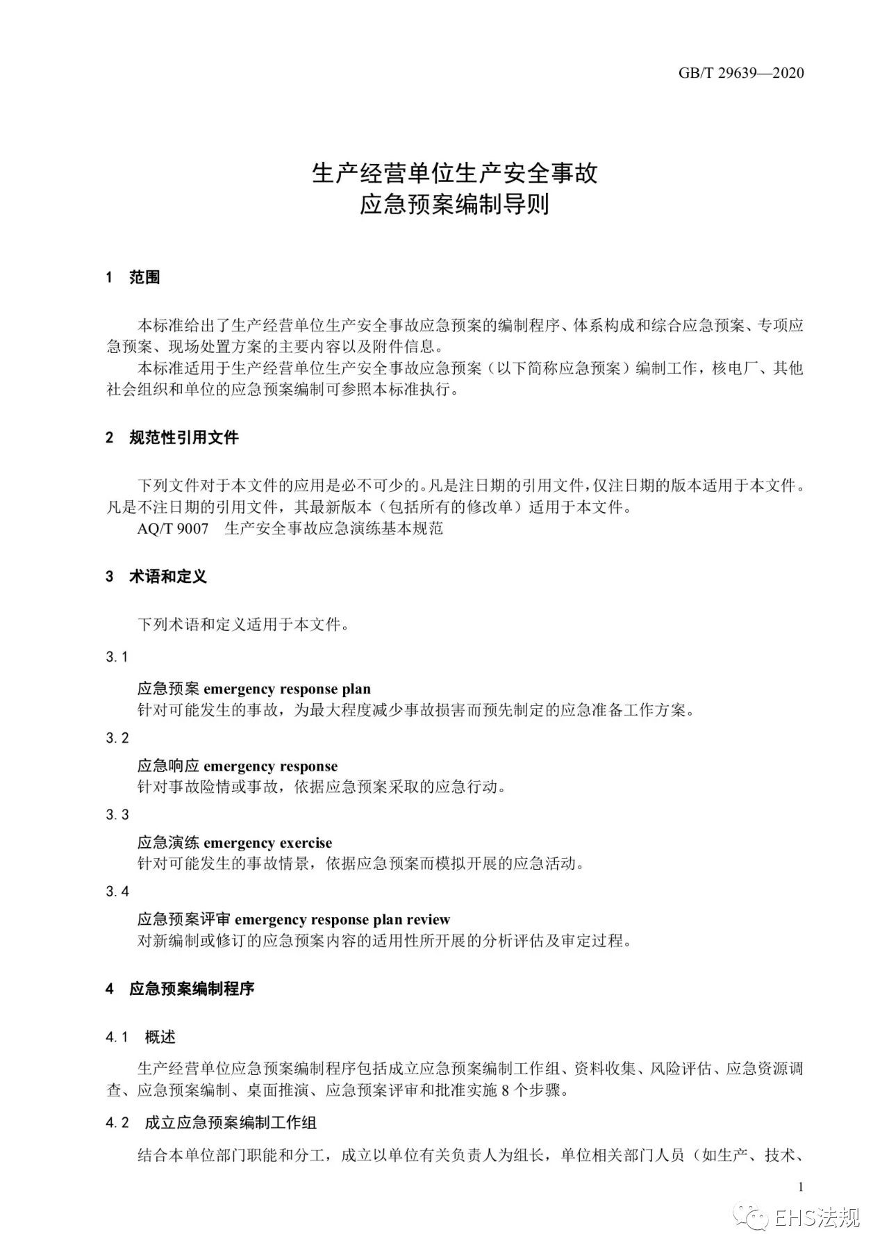 重磅!GBT29639-2020《生產經營單位生產安全事故應急預案編制導則》發布,21年4月實施!