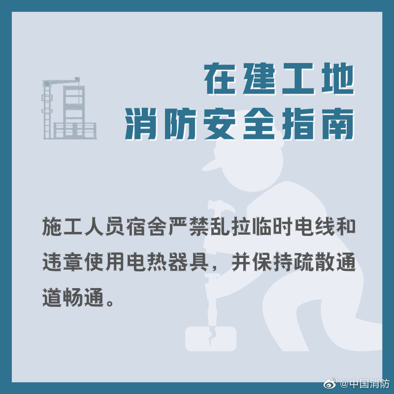 在建工地的施工現場防范措施不到位,易燃可燃材料多,施工人員消防安全意識談薄,都容易造成火災,收下這份在建工地消防安全指南,確保工地消防安全!