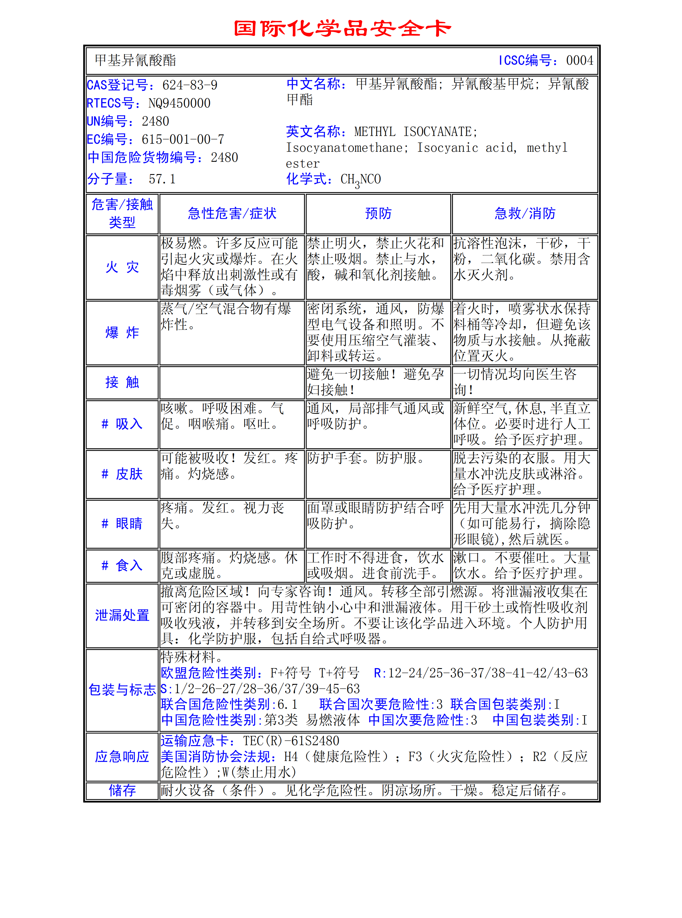 甲基異氰酸酯MSDS