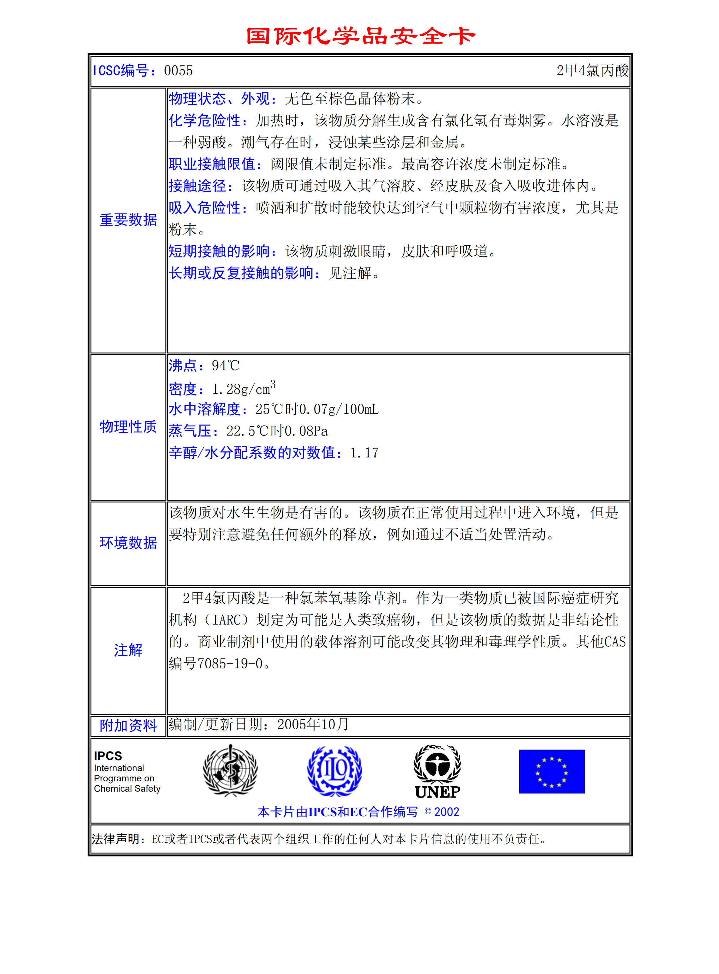 2甲4氯丙酸MSDS