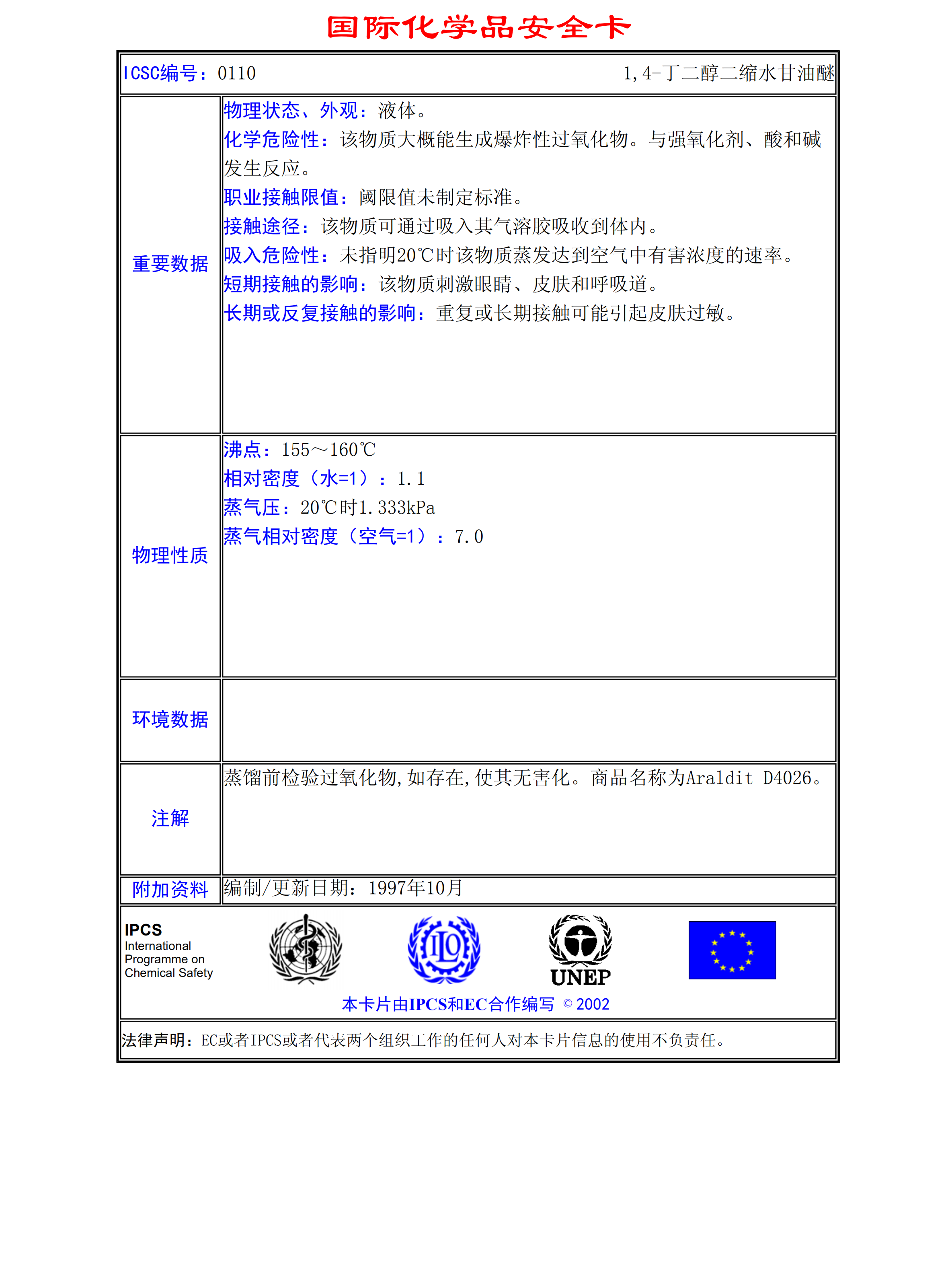 1,4-丁二醇二縮水甘油醚MSDS
