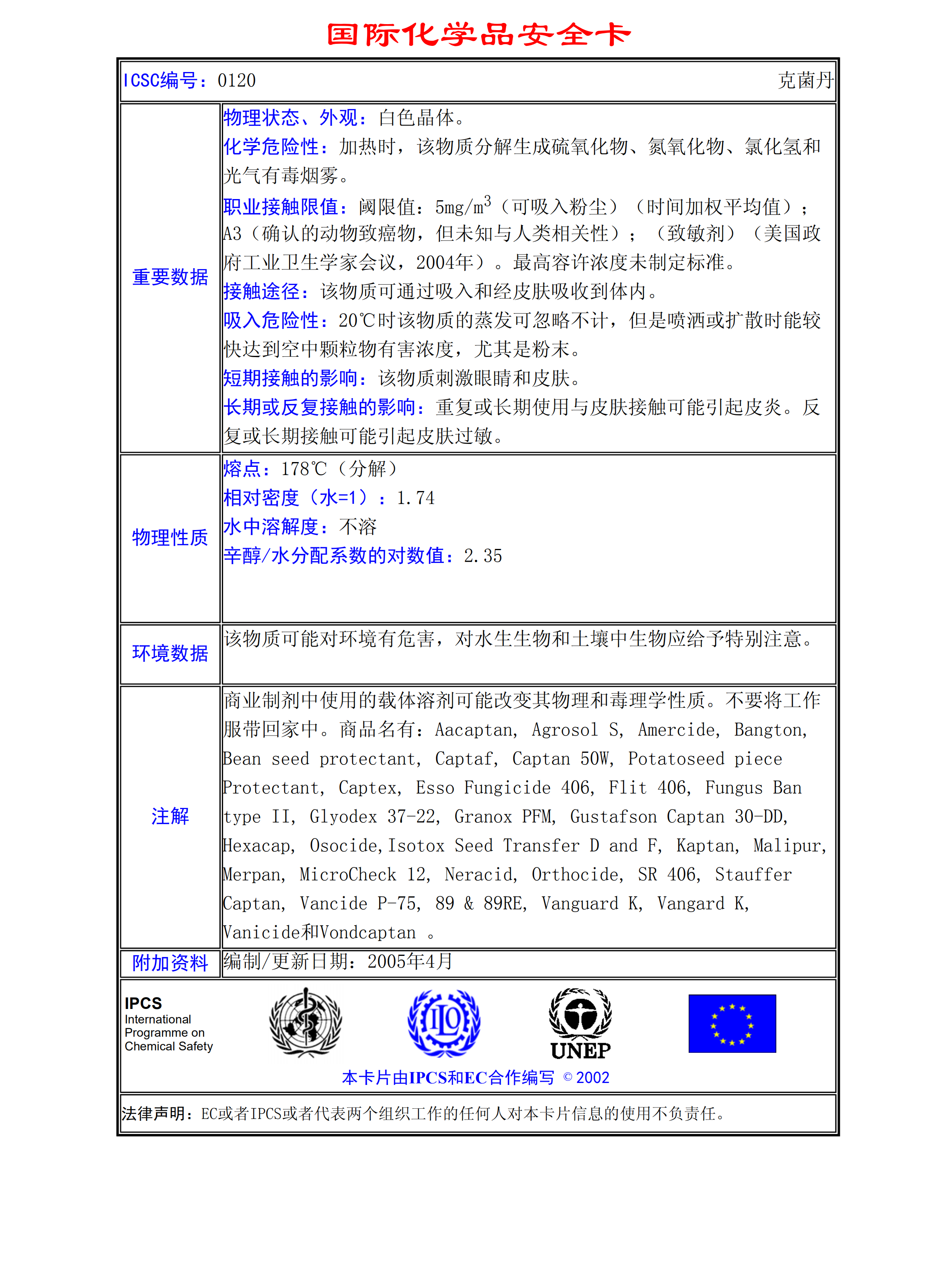 克菌丹MSDS