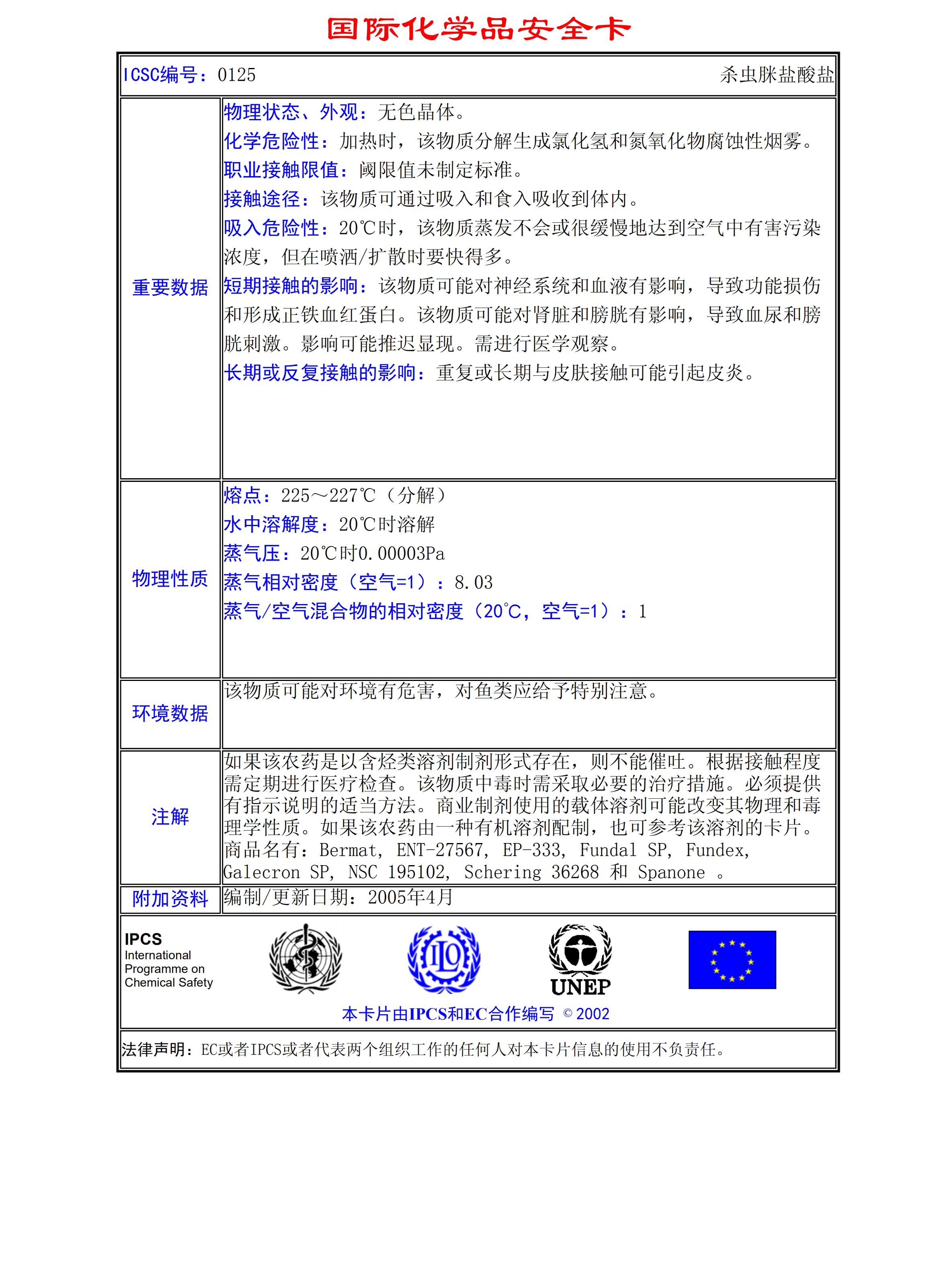 殺蟲脒鹽酸鹽MSDS