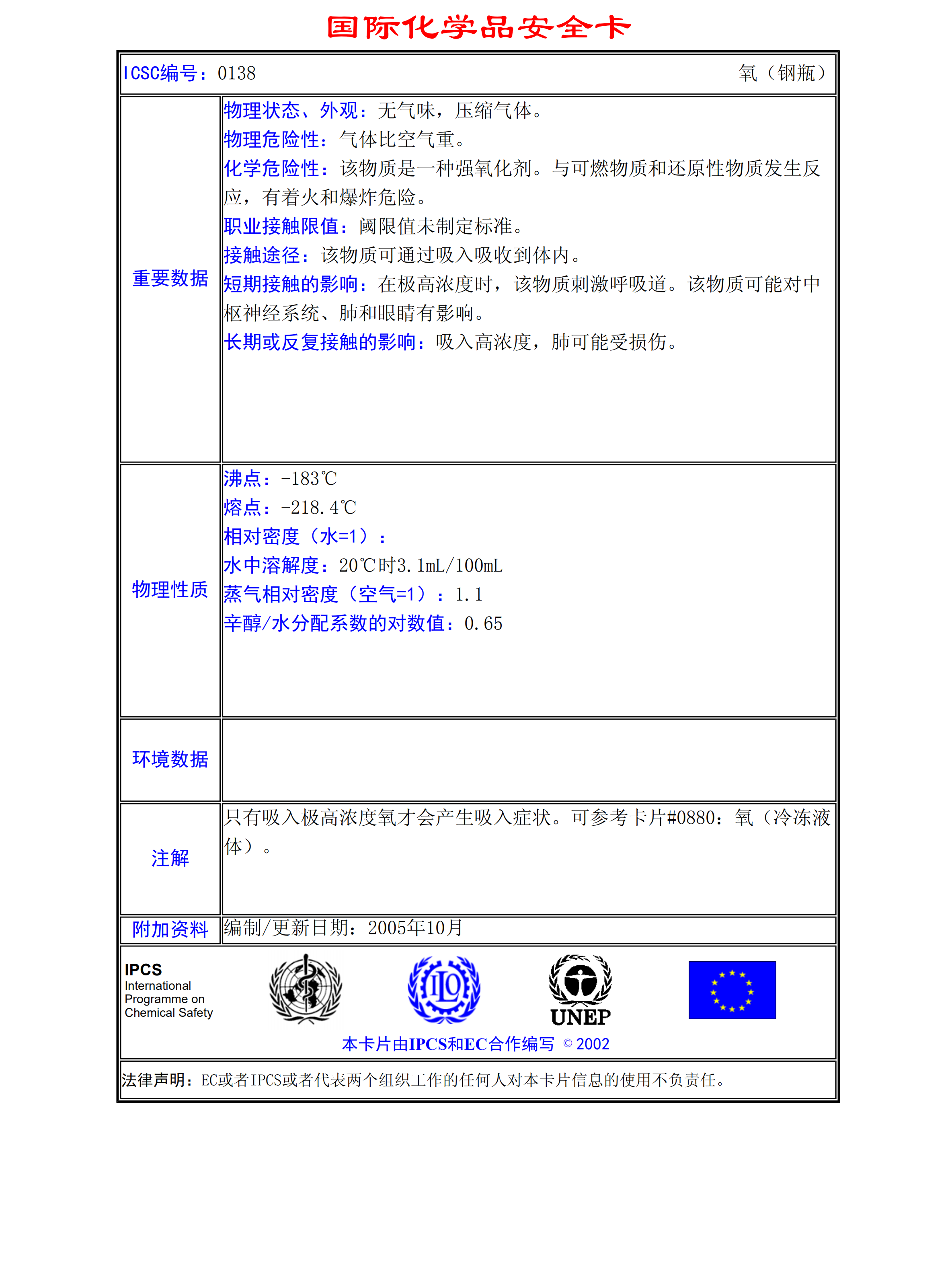 氧(鋼瓶)MSDS