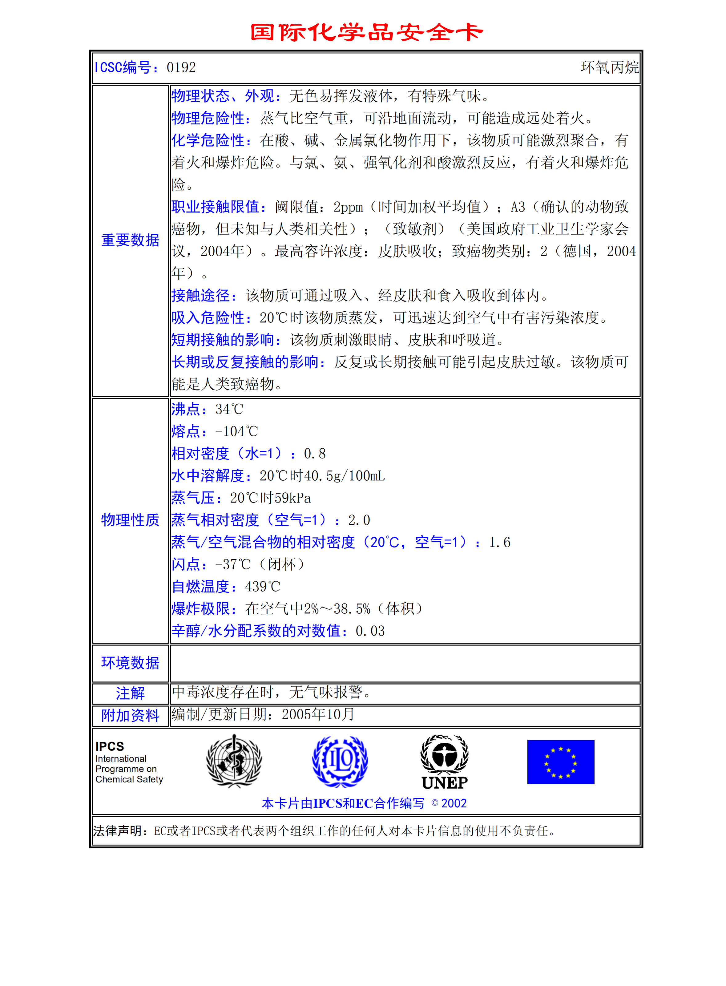 環氧丙烷MSDS