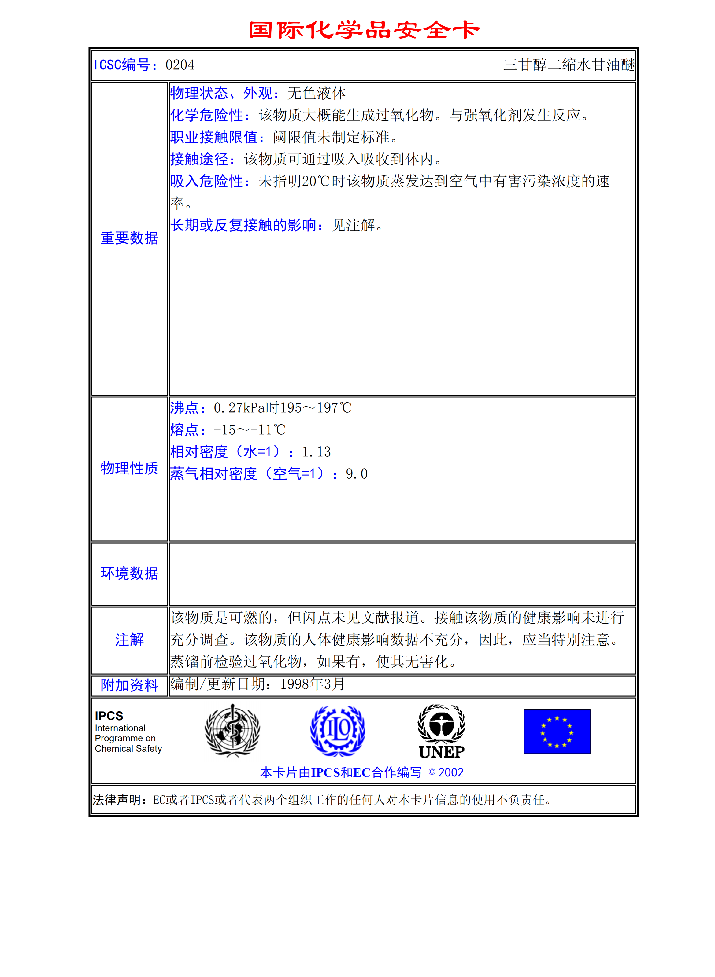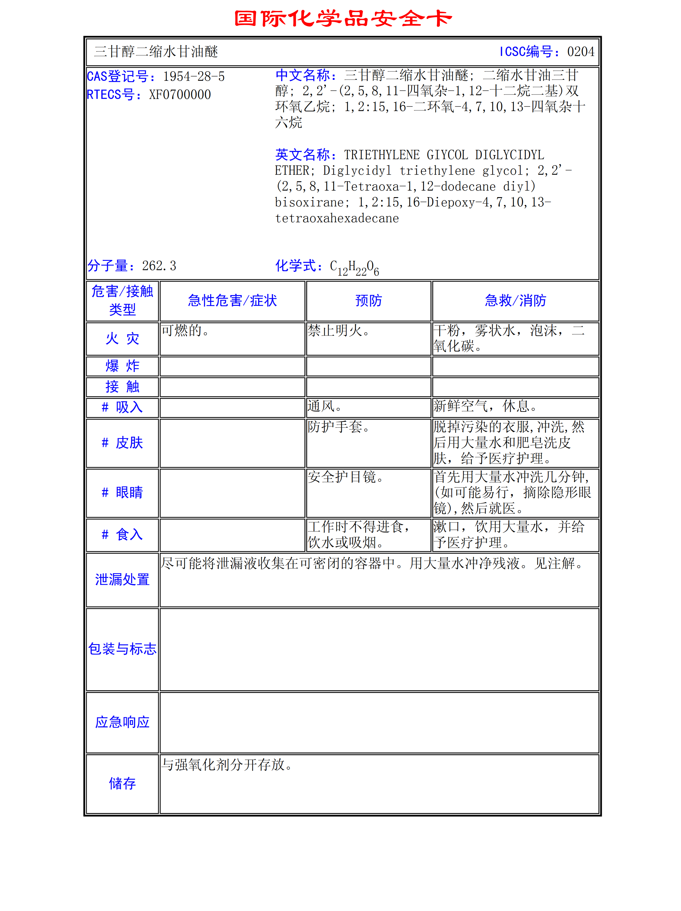 三甘醇二縮水甘油醚MSDS