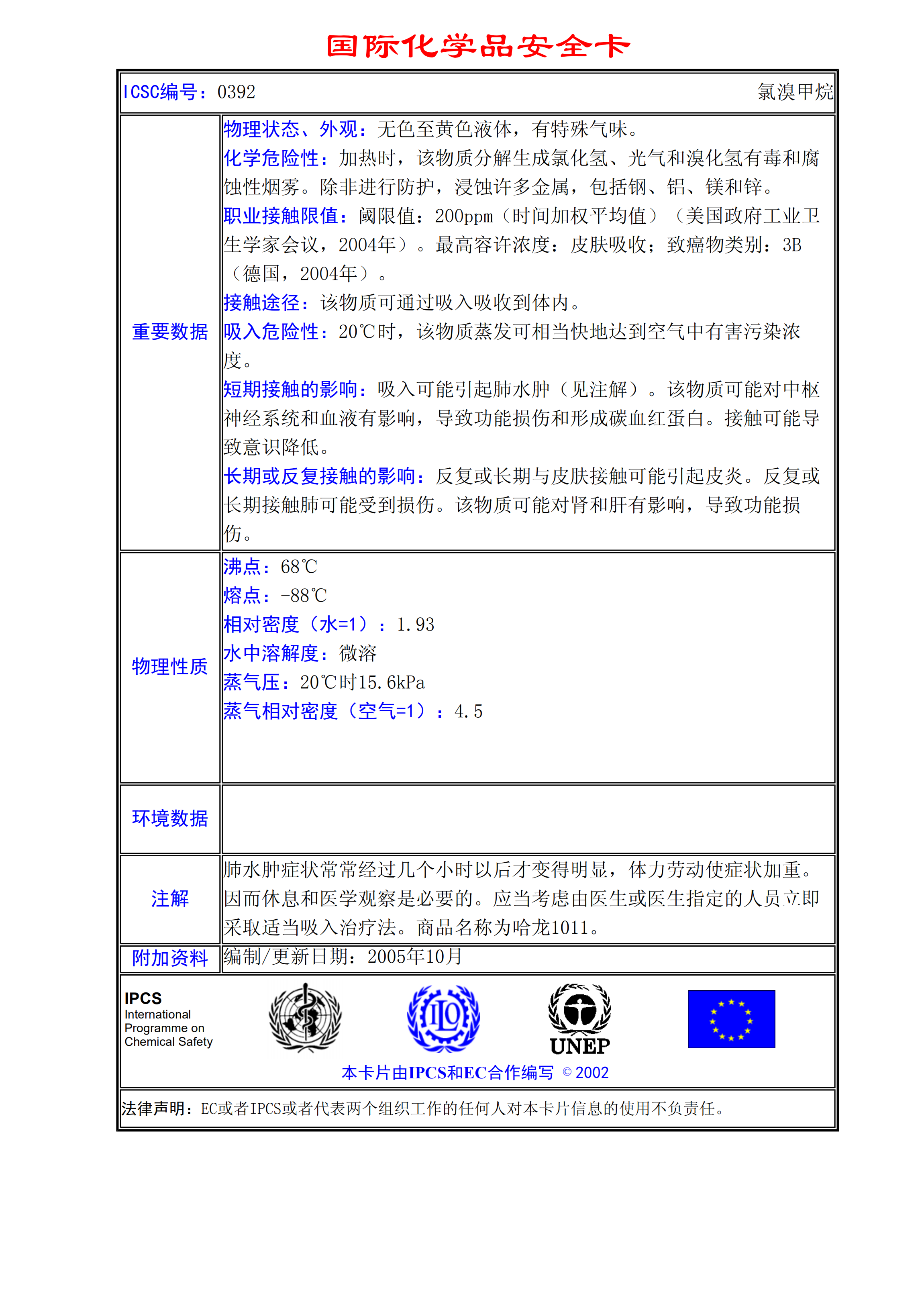 氯溴甲烷MSDS