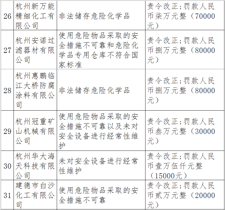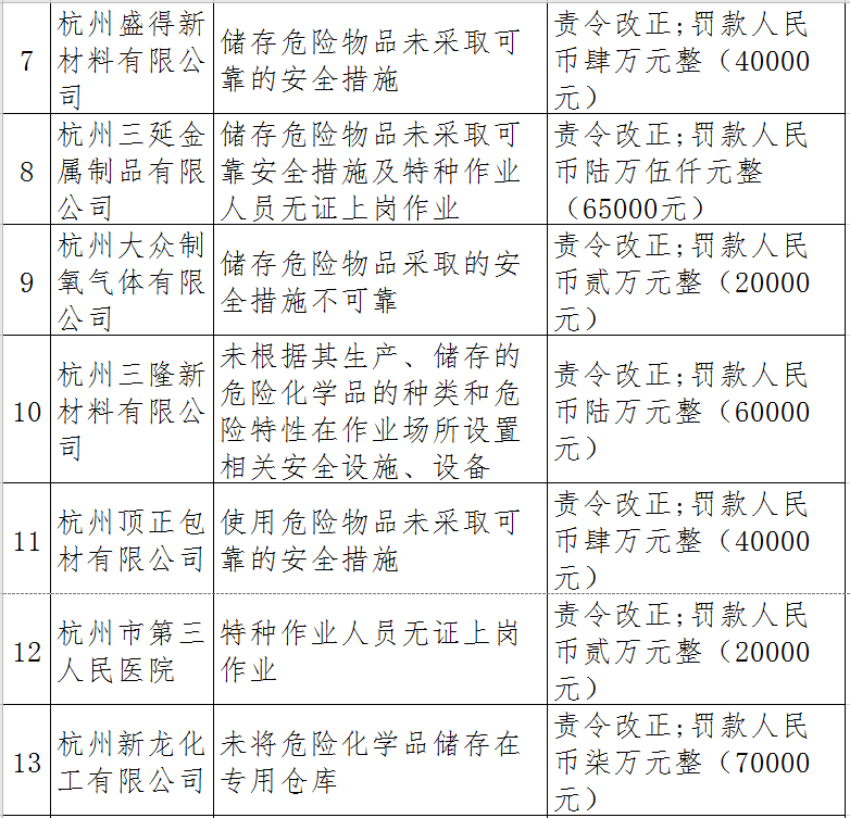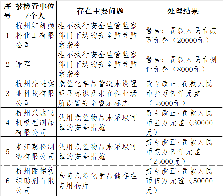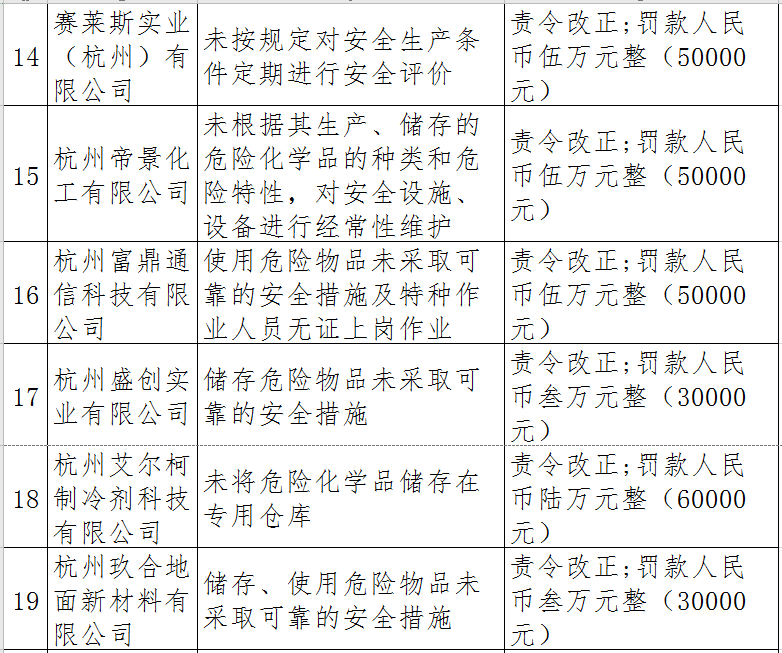 近日,杭州市應急管理局對50多家被行政處罰的企業(個人)進行曝光