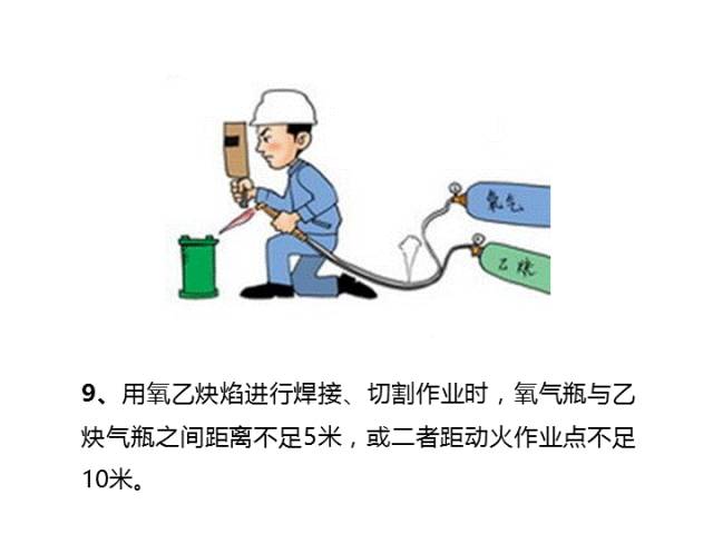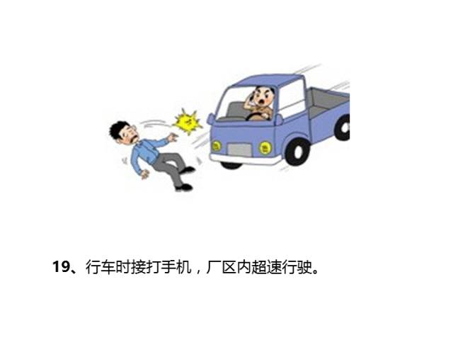 一、操作失誤、忽視安全、忽視警告 二、造成安全裝置失效 三、不安全的使用設備 四、用手替代工具操作 五、物體存放不當 六、冒險進入危險場所 七、處于不安全的位置 八、在起吊物下停留、作業 九、機械運轉時加油、修理、檢查、調整、焊掃等 十、分散注意力的行為 十一、忽視實用個人防護用具 十二、不安全裝束 十三、對易燃易爆等危險品處理錯誤