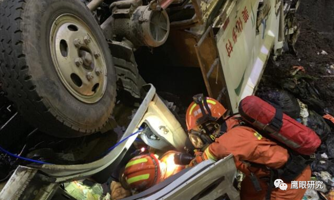 湖南某垃圾電廠一垃圾車連人帶車墜入23米深垃圾庫