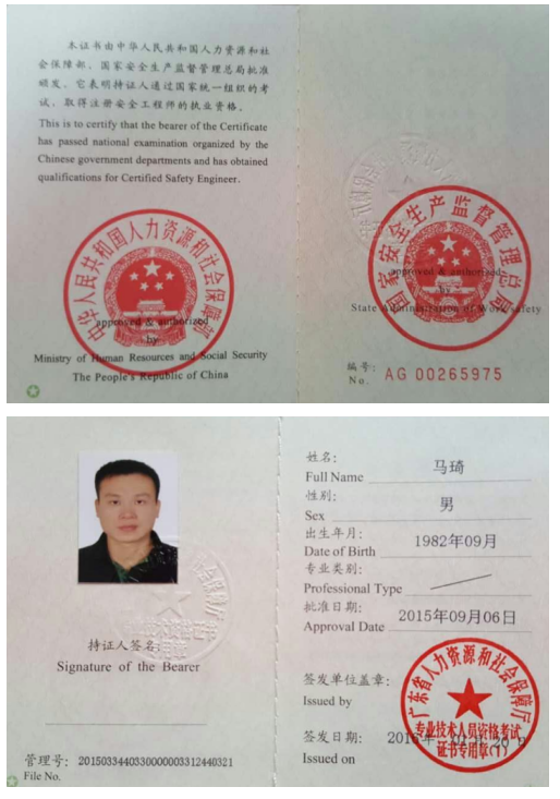 注冊安全工程師 | 馬琦 | 00265975 | 13590190919 | |