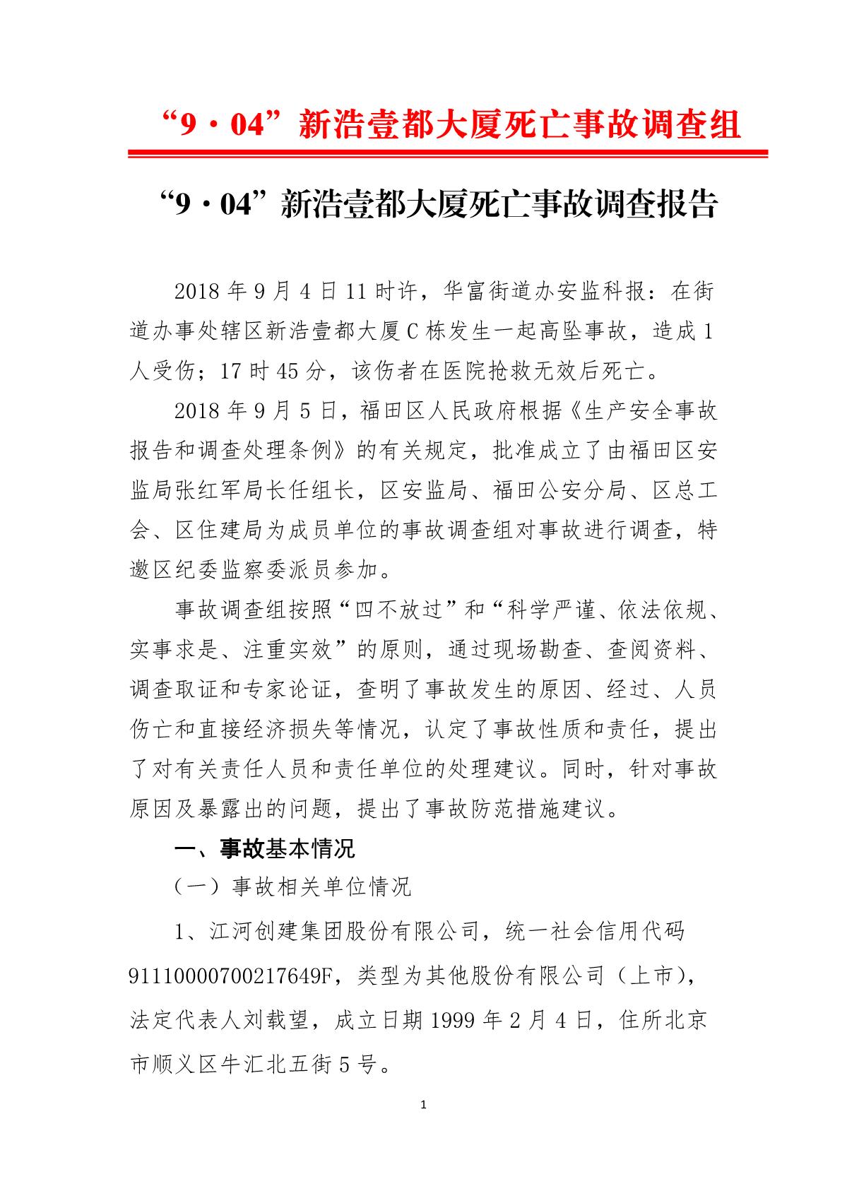 “9.04”新浩壹都大廈死亡事故調(diào)查報(bào)告