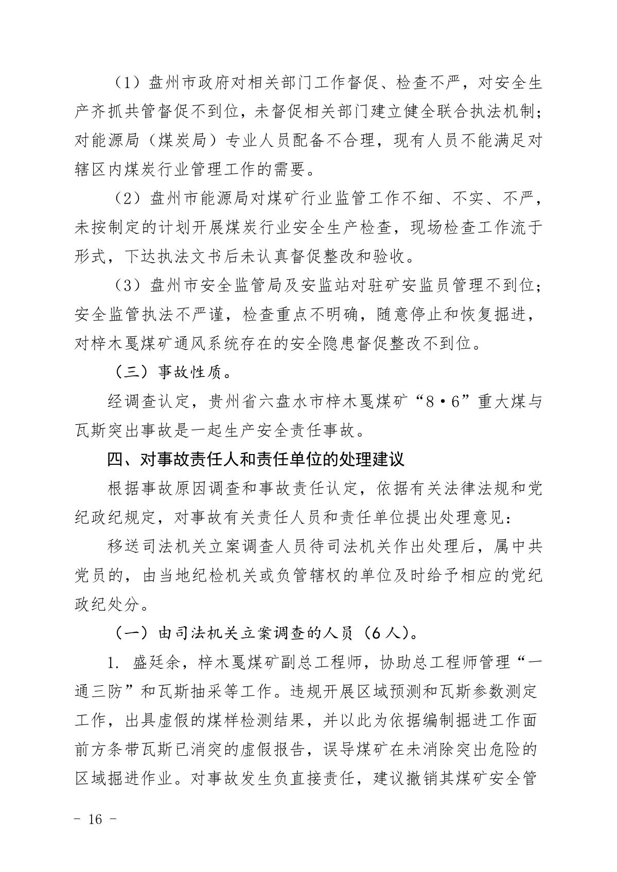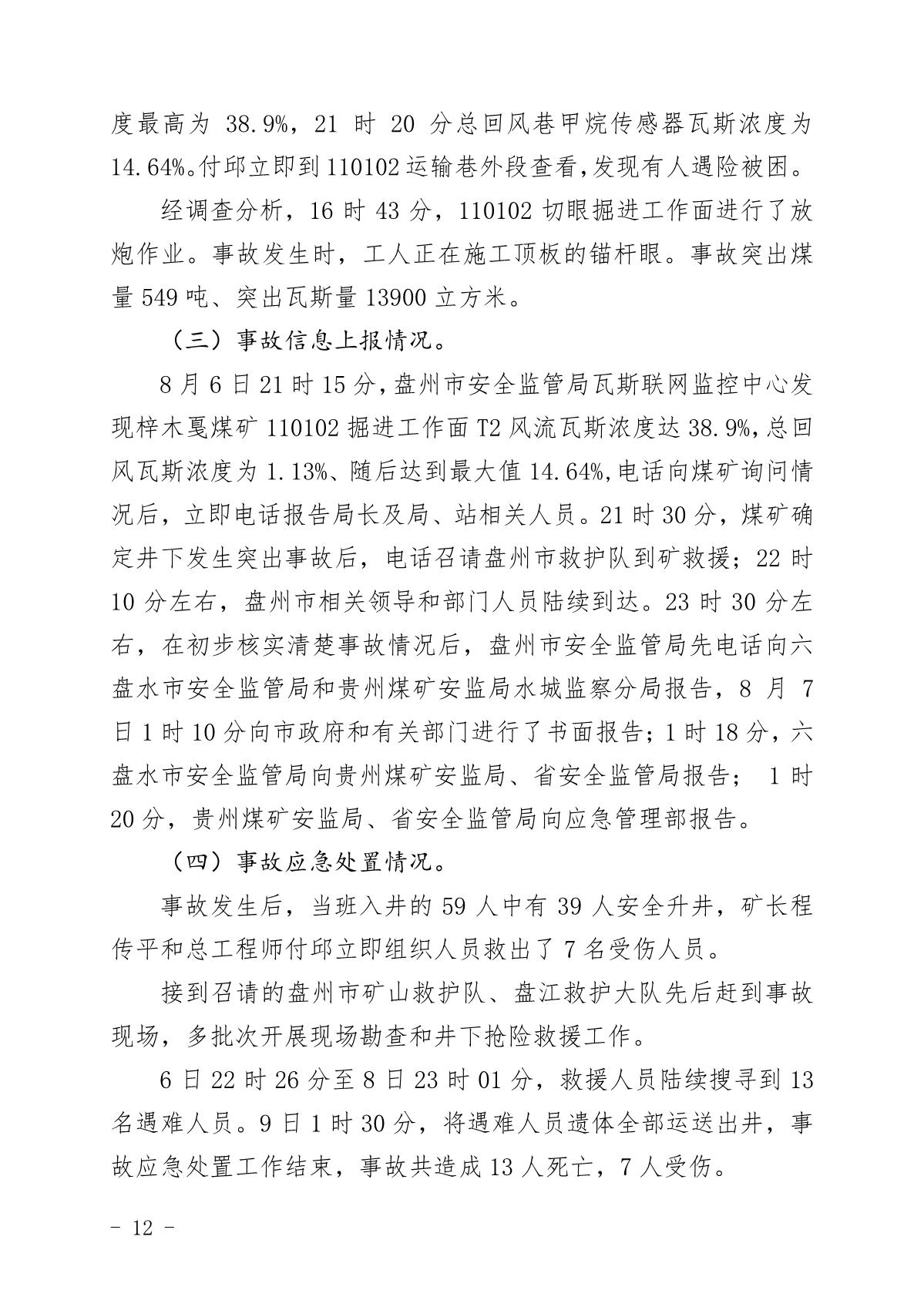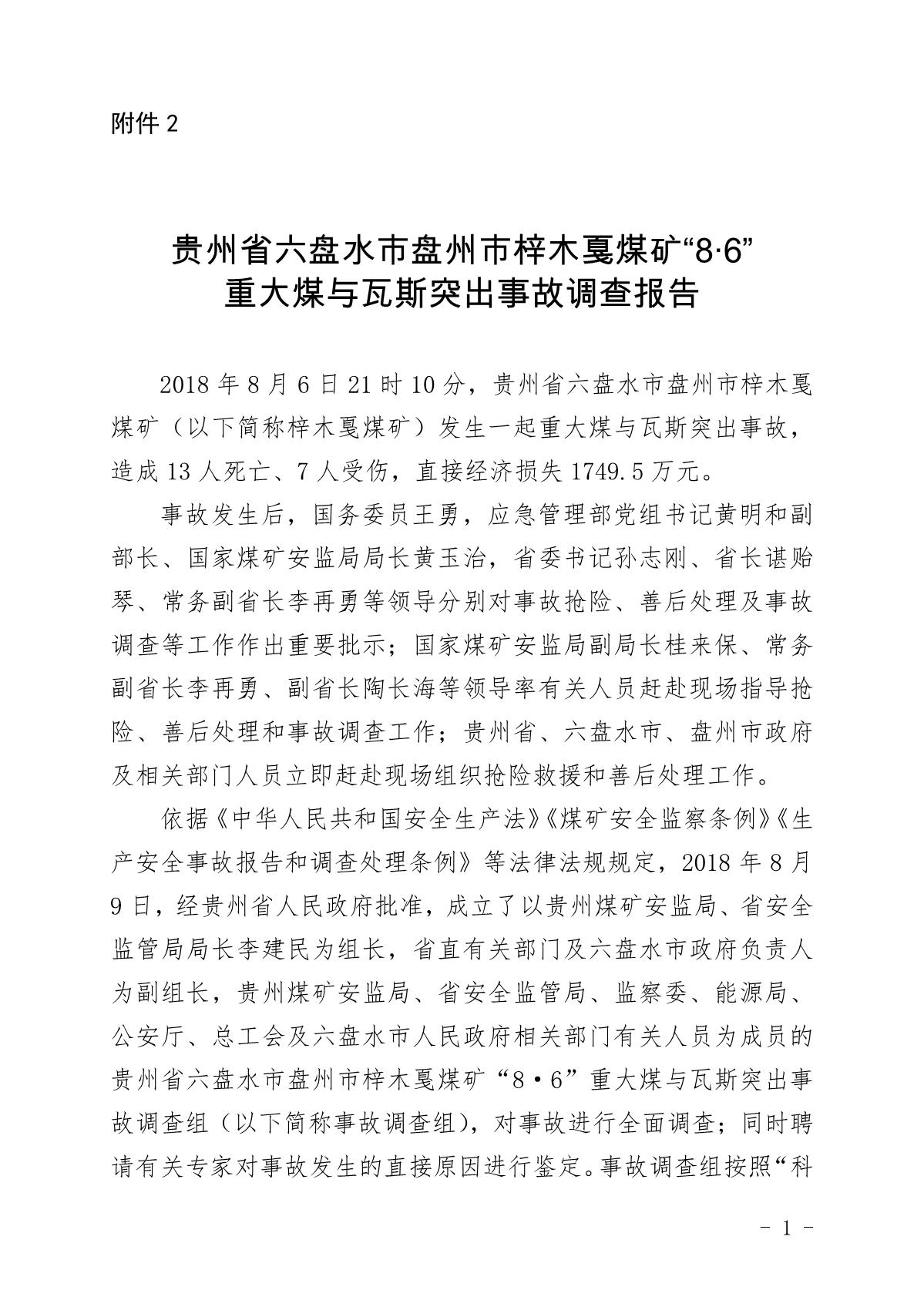 貴州六盤水梓木戛煤礦“8·6”重大煤與瓦斯突出事故調(diào)查報告