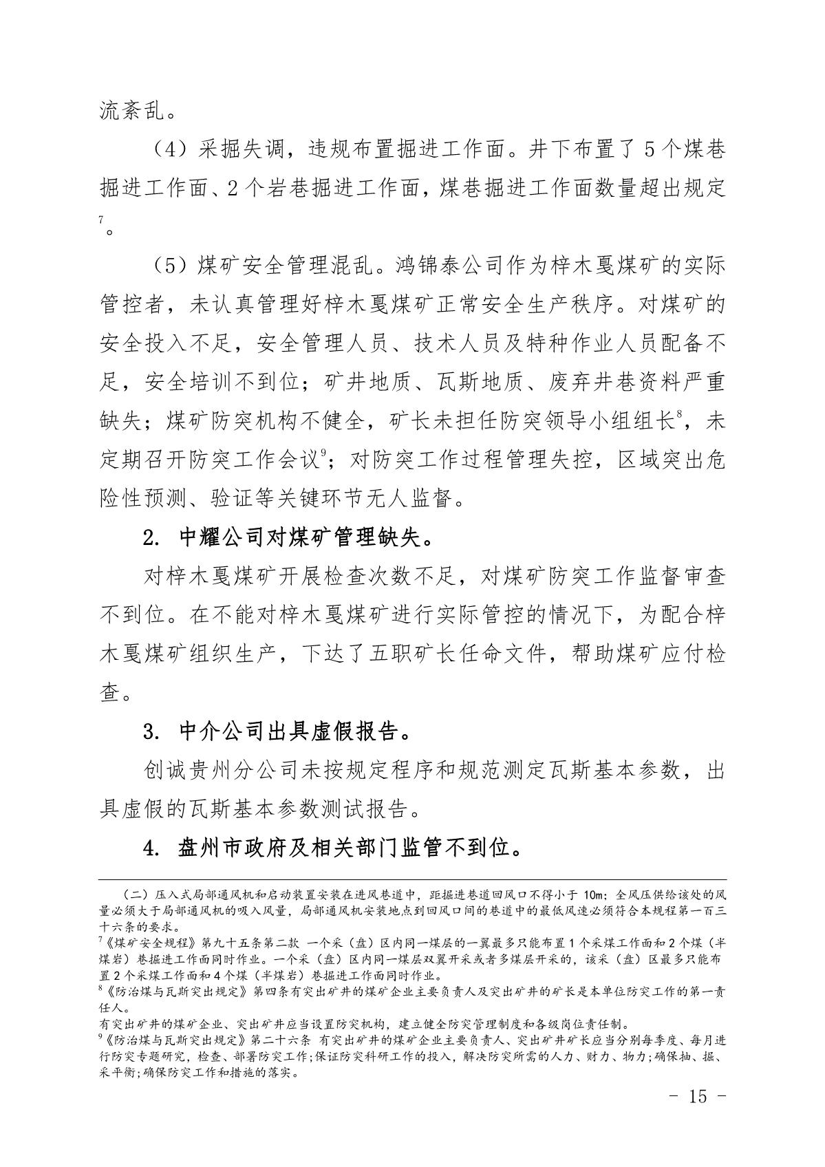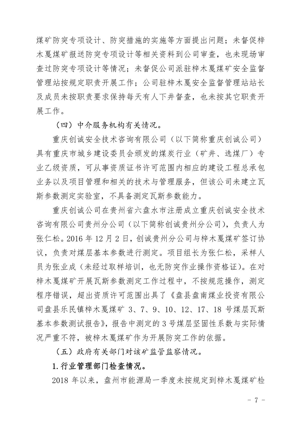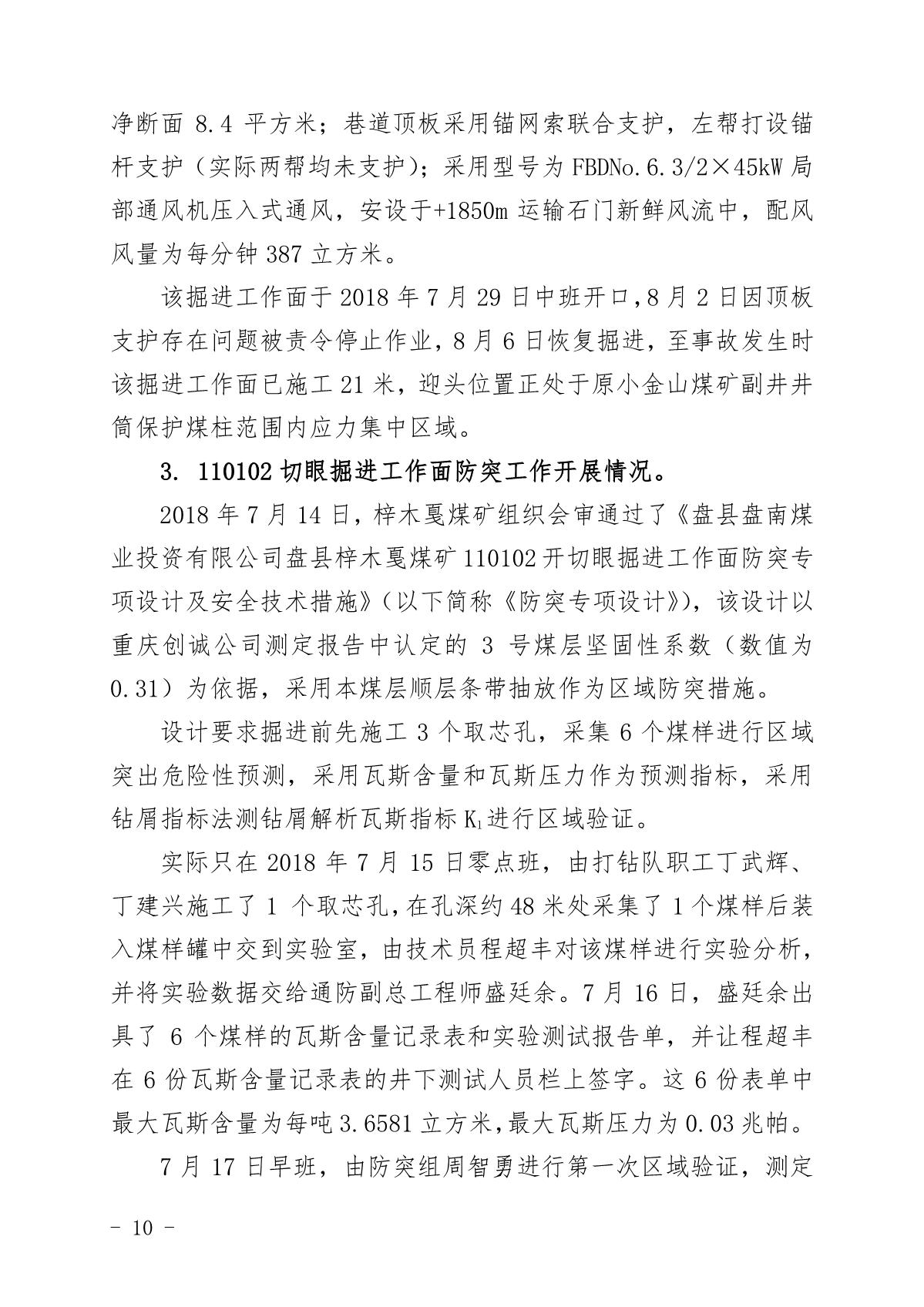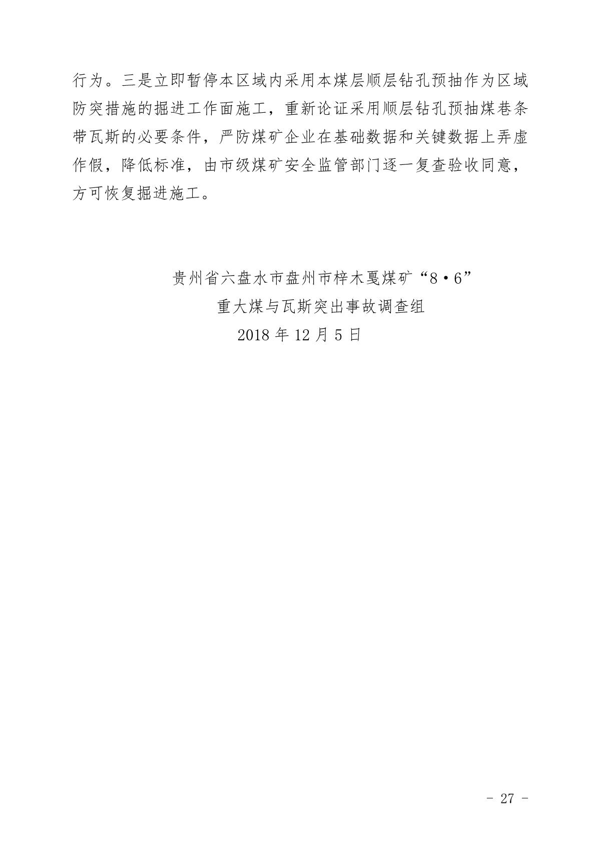 貴州六盤水梓木戛煤礦“8·6”重大煤與瓦斯突出事故調(diào)查報告