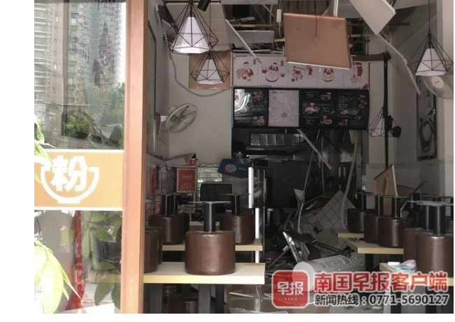 當天上午9時許,記者在現場看到,出事的粉店位于小區沿街商鋪,鋪面前已拉起了警戒線。現場沒有明火,店內多處玻璃被震碎,一片狼藉。事發粉店旁邊的其他店鋪并未受影響,正常營業。