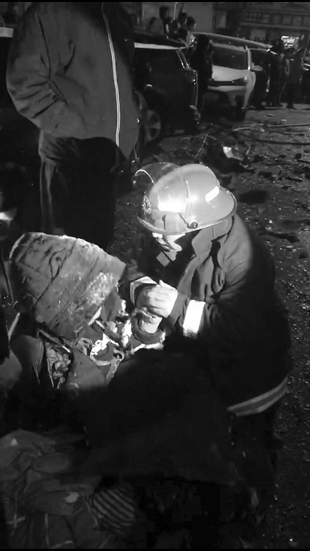消防隊員從樓內背出多名傷者。記者看到,部分傷者頭部流血。“挺住啊,一定要堅持住!”一名男子捂著一名男性傷者的頭部,在刺骨的寒風中不住地鼓勵他。同時,有部分尚能自己行走的傷者在親人攙扶下被疏散到安全區域。