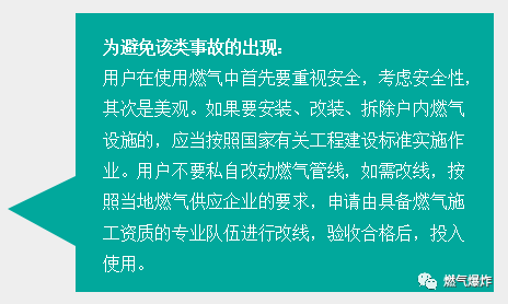 2012年7月27日重慶奉節(jié)縣一居民家發(fā)生天然氣意外泄漏事故,發(fā)生事故的居民家中所有家具和電器都被燒毀,窗戶的玻璃已被震爛。爆炸造成一家6人燒傷,最終一人搶救無效死亡。據(jù)網(wǎng)上報(bào)道爆炸是由于天然氣管道與輸氣軟管之間存在縫隙,導(dǎo)致天然氣泄漏引發(fā)的。在該戶家中,發(fā)現(xiàn)新買的燃?xì)庠罹撸莻€(gè)三無產(chǎn)品。該戶的燃?xì)夤艿?,是由兩根軟管接起來的,一根軟管不夠長,中間還用一根硬塑料管連了起來,還使用了膠水來粘接,這是非常危險(xiǎn)的作法,連接的塑料管是硬的,天然氣完全可能因連接處泄漏出來。也許是用戶點(diǎn)了火,也許只是開了某一種電器的開關(guān),就引起了天然氣爆炸,隨后的火焰擴(kuò)散,屋內(nèi)東西全部燒毀。