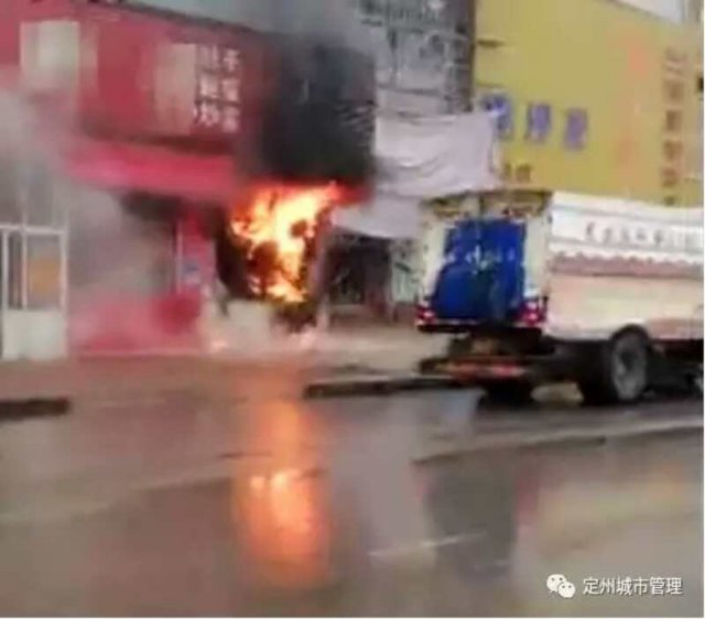 記者了解到,飯店起火的時候,旁邊大約兩米的地方停著一輛面包車。比韓廣亮距離飯店更近的是正在清掃保潔的定州市昌潤達環衛公司員工李建偉、龐冬梅、王永坡。
